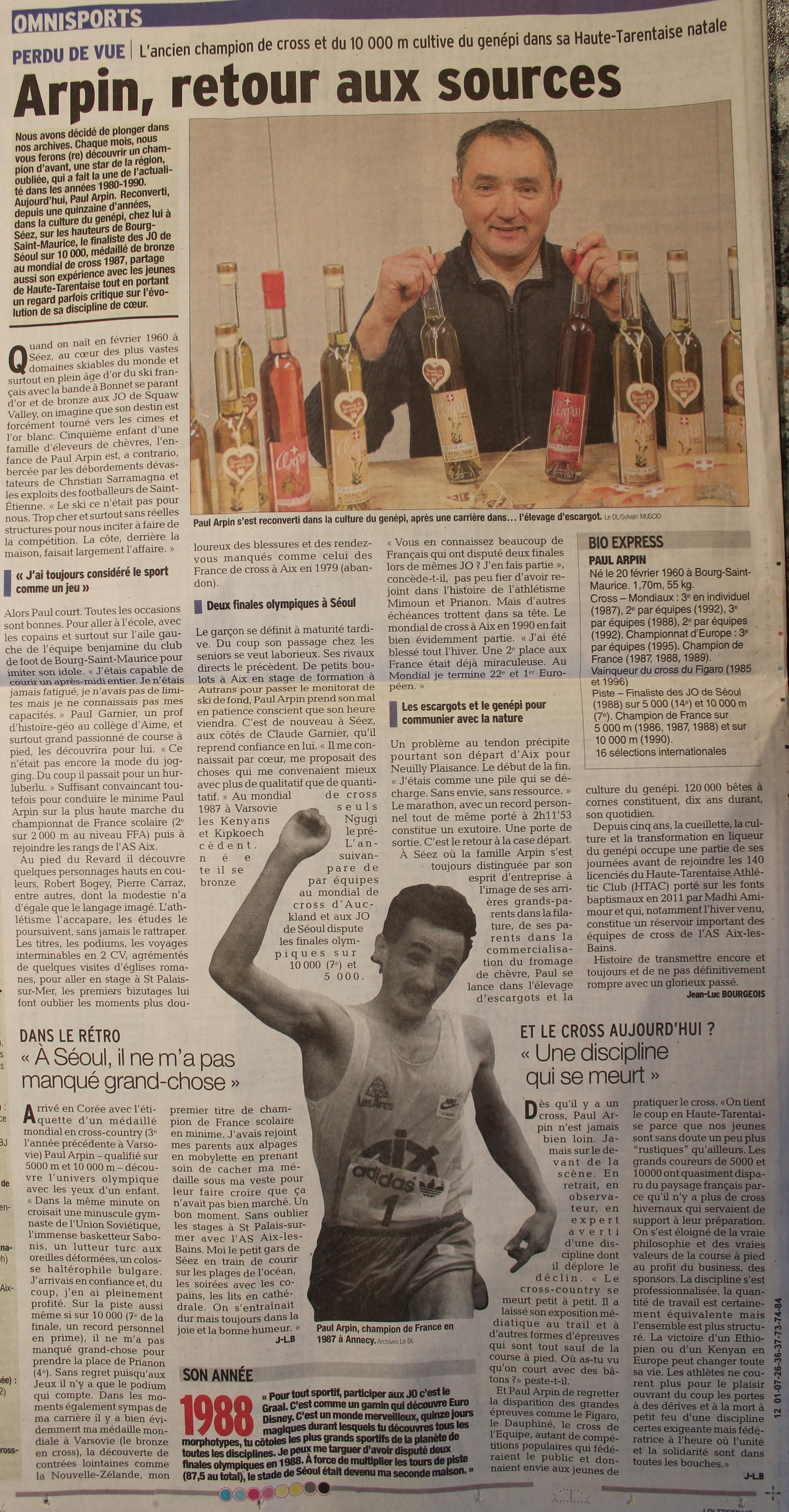 Dans Le Dauphiné Libéré du lundi 23 février, dans le cahier des sports, Paul Arpin, le retour aux sources, mais également le cross aujourd’hui, une discipline qui se meurt
