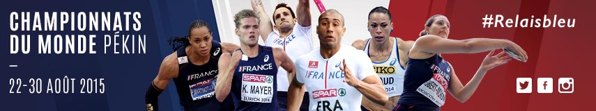 Du 22 au 30 août 2015, Championnats du monde d’athlétisme à Pékin. Vous pourrez suivre l’événement sur France 2, France 3 et France O, également sur la TSR… Attention 6 heures de décalage entre la France et Pékin. Le programme et les athlètes français engagés en cliquant ICI