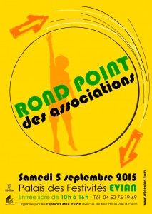 C’est au Palais des Festivités qu’aura lieu le Rond Point des associations Evianaises, organisé par la M.J.C. d’Evian. La section Evianaise du Léman Athlétic sera présente, l’occasion sera donc bonne pour se renseigner sur le club, de s’inscrire…. L’Entrée est libre de 10h à 16h.