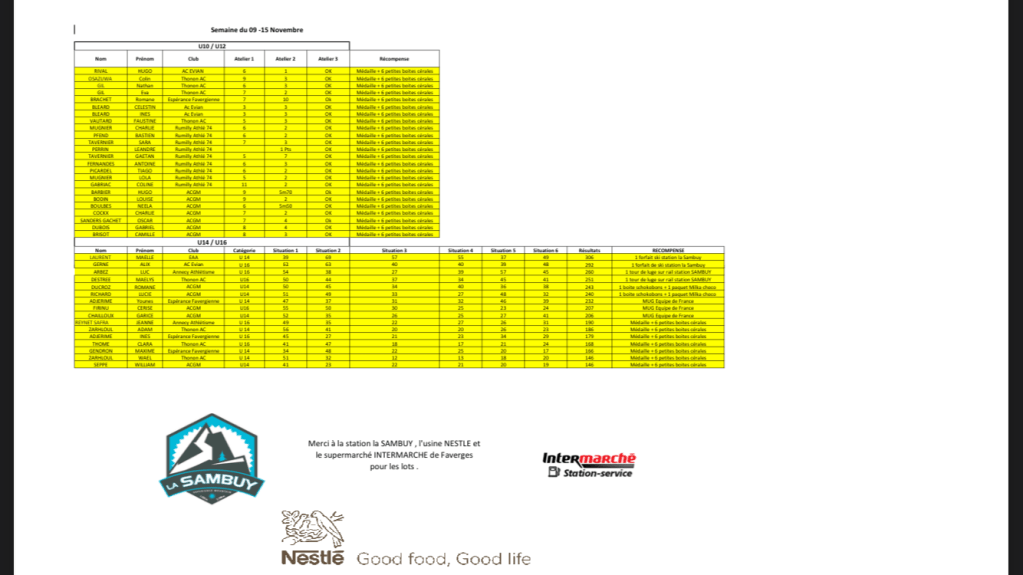 Il manque Hugo et Sarah pour la 1ère semaine qui ont transmis tardivement leur résultats. Énorme bravo à Inès, Célestin, Sarah et Hugo ! Tous les enfants peuvent participer chaque semaine les entraîneurs seraient ravis de voir des photos ou vidéos de vos activités athlétiques depuis chez vous ! Voici les ateliers EA/PO de cette semaine :